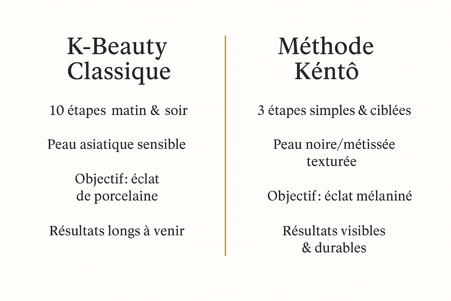 Chez Kéntô Beauty, nous adaptons la science coréenne aux besoins réels des peaux noires et métissées : des résultats doux, durables, visibles.