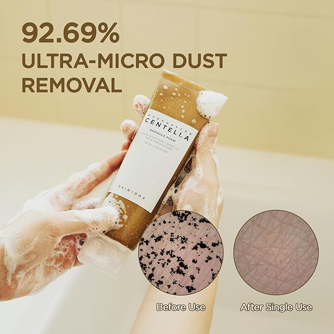Cette mousse nettoyante naturelle légèrement acide a un pH de 5. Son pouvoir nettoyant avancé élimine même la poussière fine. La mousse riche et délicate a un fini doux et hydratant. Centella Ampoule apaise la peau et assure le bon équilibre. Les tensioactifs dérivés de la noix de coco nettoient la peau en douceur et l’hydratent. La poudre de soude ultra-fine adhère au sébum et aux déchets dans les pores pour les éliminer efficacement.